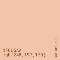 Цвет #F0C5AA в цветовой модели RGB обозначается тремя октетами (240, 197, 170) в десятичном формате и #F0C5AA в шестнадцатиричном (hex) формате, которые являются интенсивностью красного 240 (hex F0), интенсивность зелёного 197 (hex C5) и интенсивность синего 170 (hex AA).