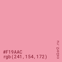 Цвет #F19AAC в цветовой модели RGB обозначается тремя октетами (241, 154, 172) в десятичном формате и #F19AAC в шестнадцатиричном (hex) формате, которые являются интенсивностью красного 241 (hex F1), интенсивность зелёного 154 (hex 9A) и интенсивность синего 172 (hex AC).