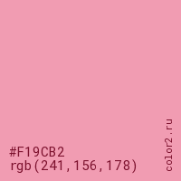 Цвет #F19CB2 в цветовой модели RGB обозначается тремя октетами (241, 156, 178) в десятичном формате и #F19CB2 в шестнадцатиричном (hex) формате, которые являются интенсивностью красного 241 (hex F1), интенсивность зелёного 156 (hex 9C) и интенсивность синего 178 (hex B2).