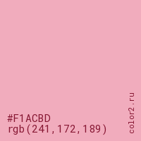 Цвет #F1ACBD в цветовой модели RGB обозначается тремя октетами (241, 172, 189) в десятичном формате и #F1ACBD в шестнадцатиричном (hex) формате, которые являются интенсивностью красного 241 (hex F1), интенсивность зелёного 172 (hex AC) и интенсивность синего 189 (hex BD).