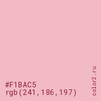 Цвет #F1BAC5 в цветовой модели RGB обозначается тремя октетами (241, 186, 197) в десятичном формате и #F1BAC5 в шестнадцатиричном (hex) формате, которые являются интенсивностью красного 241 (hex F1), интенсивность зелёного 186 (hex BA) и интенсивность синего 197 (hex C5).