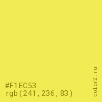 Цвет #F1EC53 в цветовой модели RGB обозначается тремя октетами (241, 236, 83) в десятичном формате и #F1EC53 в шестнадцатиричном (hex) формате, которые являются интенсивностью красного 241 (hex F1), интенсивность зелёного 236 (hex EC) и интенсивность синего 83 (hex 53).
