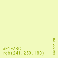 Цвет #F1FABC в цветовой модели RGB обозначается тремя октетами (241, 250, 188) в десятичном формате и #F1FABC в шестнадцатиричном (hex) формате, которые являются интенсивностью красного 241 (hex F1), интенсивность зелёного 250 (hex FA) и интенсивность синего 188 (hex BC).