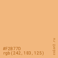 Цвет #F2B77D в цветовой модели RGB обозначается тремя октетами (242, 183, 125) в десятичном формате и #F2B77D в шестнадцатиричном (hex) формате, которые являются интенсивностью красного 242 (hex F2), интенсивность зелёного 183 (hex B7) и интенсивность синего 125 (hex 7D).
