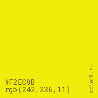 Цвет #F2EC0B в цветовой модели RGB обозначается тремя октетами (242, 236, 11) в десятичном формате и #F2EC0B в шестнадцатиричном (hex) формате, которые являются интенсивностью красного 242 (hex F2), интенсивность зелёного 236 (hex EC) и интенсивность синего 11 (hex 0B).