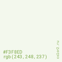 Цвет RGB(243, 248, 237) в процентом отношении количества цвета состоит из 95.3% красного (red), 97.3% зелёного (green) и 92.9% синего (blue).