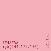 Цвет #F4AFBA в цветовой модели RGB обозначается тремя октетами (244, 175, 186) в десятичном формате и #F4AFBA в шестнадцатиричном (hex) формате, которые являются интенсивностью красного 244 (hex F4), интенсивность зелёного 175 (hex AF) и интенсивность синего 186 (hex BA).