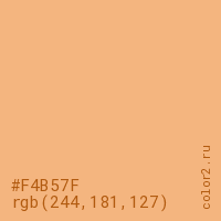 Цвет #F4B57F в цветовой модели RGB обозначается тремя октетами (244, 181, 127) в десятичном формате и #F4B57F в шестнадцатиричном (hex) формате, которые являются интенсивностью красного 244 (hex F4), интенсивность зелёного 181 (hex B5) и интенсивность синего 127 (hex 7F).