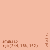 Цвет #F4BAA2 в цветовой модели RGB обозначается тремя октетами (244, 186, 162) в десятичном формате и #F4BAA2 в шестнадцатиричном (hex) формате, которые являются интенсивностью красного 244 (hex F4), интенсивность зелёного 186 (hex BA) и интенсивность синего 162 (hex A2).