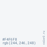 Цвет #F4F6F8 в цветовой модели RGB обозначается тремя октетами (244, 246, 248) в десятичном формате и #F4F6F8 в шестнадцатиричном (hex) формате, которые являются интенсивностью красного 244 (hex F4), интенсивность зелёного 246 (hex F6) и интенсивность синего 248 (hex F8).