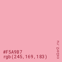 Цвет #F5A9B7 в цветовой модели RGB обозначается тремя октетами (245, 169, 183) в десятичном формате и #F5A9B7 в шестнадцатиричном (hex) формате, которые являются интенсивностью красного 245 (hex F5), интенсивность зелёного 169 (hex A9) и интенсивность синего 183 (hex B7).