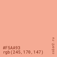 Цвет #F5AA93 в цветовой модели RGB обозначается тремя октетами (245, 170, 147) в десятичном формате и #F5AA93 в шестнадцатиричном (hex) формате, которые являются интенсивностью красного 245 (hex F5), интенсивность зелёного 170 (hex AA) и интенсивность синего 147 (hex 93).