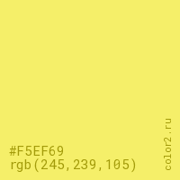 Цвет #F5EF69 в цветовой модели RGB обозначается тремя октетами (245, 239, 105) в десятичном формате и #F5EF69 в шестнадцатиричном (hex) формате, которые являются интенсивностью красного 245 (hex F5), интенсивность зелёного 239 (hex EF) и интенсивность синего 105 (hex 69).