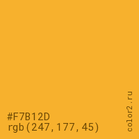 Цвет #F7B12D в цветовой модели RGB обозначается тремя октетами (247, 177, 45) в десятичном формате и #F7B12D в шестнадцатиричном (hex) формате, которые являются интенсивностью красного 247 (hex F7), интенсивность зелёного 177 (hex B1) и интенсивность синего 45 (hex 2D).