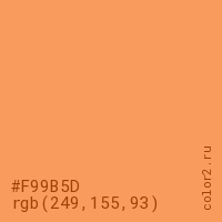 Цвет #F99B5D в цветовой модели RGB обозначается тремя октетами (249, 155, 93) в десятичном формате и #F99B5D в шестнадцатиричном (hex) формате, которые являются интенсивностью красного 249 (hex F9), интенсивность зелёного 155 (hex 9B) и интенсивность синего 93 (hex 5D).