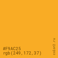 Цвет #F9AC25 в цветовой модели RGB обозначается тремя октетами (249, 172, 37) в десятичном формате и #F9AC25 в шестнадцатиричном (hex) формате, которые являются интенсивностью красного 249 (hex F9), интенсивность зелёного 172 (hex AC) и интенсивность синего 37 (hex 25).