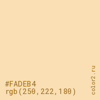 В представлении HSL цвет #FADEB4 принимает значения тона (hue) 36, насыщенности (saturation) 88%, светлости (lightness) 84%.