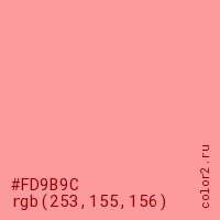 Цвет #FD9B9C в цветовой модели RGB обозначается тремя октетами (253, 155, 156) в десятичном формате и #FD9B9C в шестнадцатиричном (hex) формате, которые являются интенсивностью красного 253 (hex FD), интенсивность зелёного 155 (hex 9B) и интенсивность синего 156 (hex 9C).