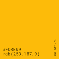 Цвет #FDBB09 в цветовой модели RGB обозначается тремя октетами (253, 187, 9) в десятичном формате и #FDBB09 в шестнадцатиричном (hex) формате, которые являются интенсивностью красного 253 (hex FD), интенсивность зелёного 187 (hex BB) и интенсивность синего 9 (hex 09).