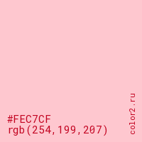 Цвет #FEC7CF в цветовой модели RGB обозначается тремя октетами (254, 199, 207) в десятичном формате и #FEC7CF в шестнадцатиричном (hex) формате, которые являются интенсивностью красного 254 (hex FE), интенсивность зелёного 199 (hex C7) и интенсивность синего 207 (hex CF).