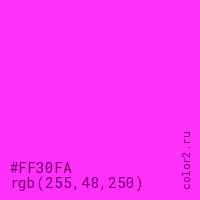 Цвет #FF30FA в цветовой модели RGB обозначается тремя октетами (255, 48, 250) в десятичном формате и #FF30FA в шестнадцатиричном (hex) формате, которые являются интенсивностью красного 255 (hex FF), интенсивность зелёного 48 (hex 30) и интенсивность синего 250 (hex FA).