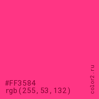Цвет #FF3584 в цветовой модели RGB обозначается тремя октетами (255, 53, 132) в десятичном формате и #FF3584 в шестнадцатиричном (hex) формате, которые являются интенсивностью красного 255 (hex FF), интенсивность зелёного 53 (hex 35) и интенсивность синего 132 (hex 84).