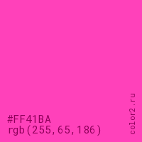 Цвет #FF41BA в цветовой модели RGB обозначается тремя октетами (255, 65, 186) в десятичном формате и #FF41BA в шестнадцатиричном (hex) формате, которые являются интенсивностью красного 255 (hex FF), интенсивность зелёного 65 (hex 41) и интенсивность синего 186 (hex BA).
