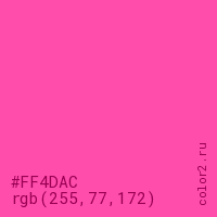 Цвет #FF4DAC в цветовой модели RGB обозначается тремя октетами (255, 77, 172) в десятичном формате и #FF4DAC в шестнадцатиричном (hex) формате, которые являются интенсивностью красного 255 (hex FF), интенсивность зелёного 77 (hex 4D) и интенсивность синего 172 (hex AC).
