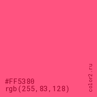 Цвет #FF5380 в цветовой модели RGB обозначается тремя октетами (255, 83, 128) в десятичном формате и #FF5380 в шестнадцатиричном (hex) формате, которые являются интенсивностью красного 255 (hex FF), интенсивность зелёного 83 (hex 53) и интенсивность синего 128 (hex 80).