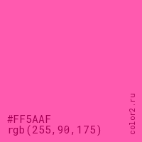 Цвет #FF5AAF в цветовой модели RGB обозначается тремя октетами (255, 90, 175) в десятичном формате и #FF5AAF в шестнадцатиричном (hex) формате, которые являются интенсивностью красного 255 (hex FF), интенсивность зелёного 90 (hex 5A) и интенсивность синего 175 (hex AF).
