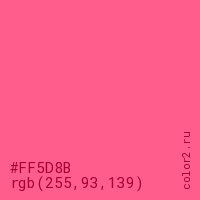 Цвет #FF5D8B в цветовой модели RGB обозначается тремя октетами (255, 93, 139) в десятичном формате и #FF5D8B в шестнадцатиричном (hex) формате, которые являются интенсивностью красного 255 (hex FF), интенсивность зелёного 93 (hex 5D) и интенсивность синего 139 (hex 8B).