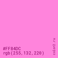 Цвет #FF84DC в цветовой модели RGB обозначается тремя октетами (255, 132, 220) в десятичном формате и #FF84DC в шестнадцатиричном (hex) формате, которые являются интенсивностью красного 255 (hex FF), интенсивность зелёного 132 (hex 84) и интенсивность синего 220 (hex DC).