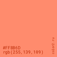 Цвет #FF8B6D в цветовой модели RGB обозначается тремя октетами (255, 139, 109) в десятичном формате и #FF8B6D в шестнадцатиричном (hex) формате, которые являются интенсивностью красного 255 (hex FF), интенсивность зелёного 139 (hex 8B) и интенсивность синего 109 (hex 6D).
