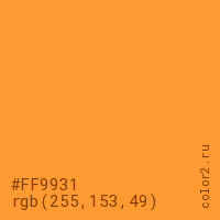 Цвет #FF9931 в цветовой модели RGB обозначается тремя октетами (255, 153, 49) в десятичном формате и #FF9931 в шестнадцатиричном (hex) формате, которые являются интенсивностью красного 255 (hex FF), интенсивность зелёного 153 (hex 99) и интенсивность синего 49 (hex 31).