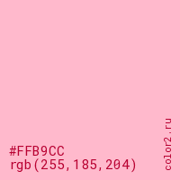 Цвет #FFB9CC в цветовой модели RGB обозначается тремя октетами (255, 185, 204) в десятичном формате и #FFB9CC в шестнадцатиричном (hex) формате, которые являются интенсивностью красного 255 (hex FF), интенсивность зелёного 185 (hex B9) и интенсивность синего 204 (hex CC).