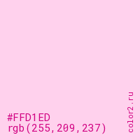 Цвет #FFD1ED в цветовой модели RGB обозначается тремя октетами (255, 209, 237) в десятичном формате и #FFD1ED в шестнадцатиричном (hex) формате, которые являются интенсивностью красного 255 (hex FF), интенсивность зелёного 209 (hex D1) и интенсивность синего 237 (hex ED).