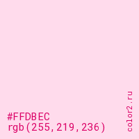 Цвет #FFDBEC в цветовой модели RGB обозначается тремя октетами (255, 219, 236) в десятичном формате и #FFDBEC в шестнадцатиричном (hex) формате, которые являются интенсивностью красного 255 (hex FF), интенсивность зелёного 219 (hex DB) и интенсивность синего 236 (hex EC).