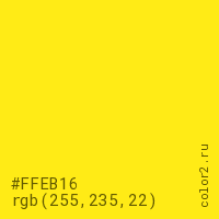 Цвет #FFEB16 в цветовой модели RGB обозначается тремя октетами (255, 235, 22) в десятичном формате и #FFEB16 в шестнадцатиричном (hex) формате, которые являются интенсивностью красного 255 (hex FF), интенсивность зелёного 235 (hex EB) и интенсивность синего 22 (hex 16).