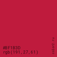 Цвет #BF1B3D в цветовой модели RGB обозначается тремя октетами (191, 27, 61) в десятичном формате и #BF1B3D в шестнадцатиричном (hex) формате, которые являются интенсивностью красного 191 (hex BF), интенсивность зелёного 27 (hex 1B) и интенсивность синего 61 (hex 3D).