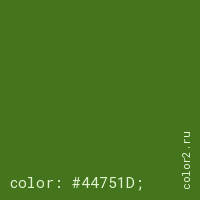 Примеры HTML кода и CSS стилей с цветом #44751D